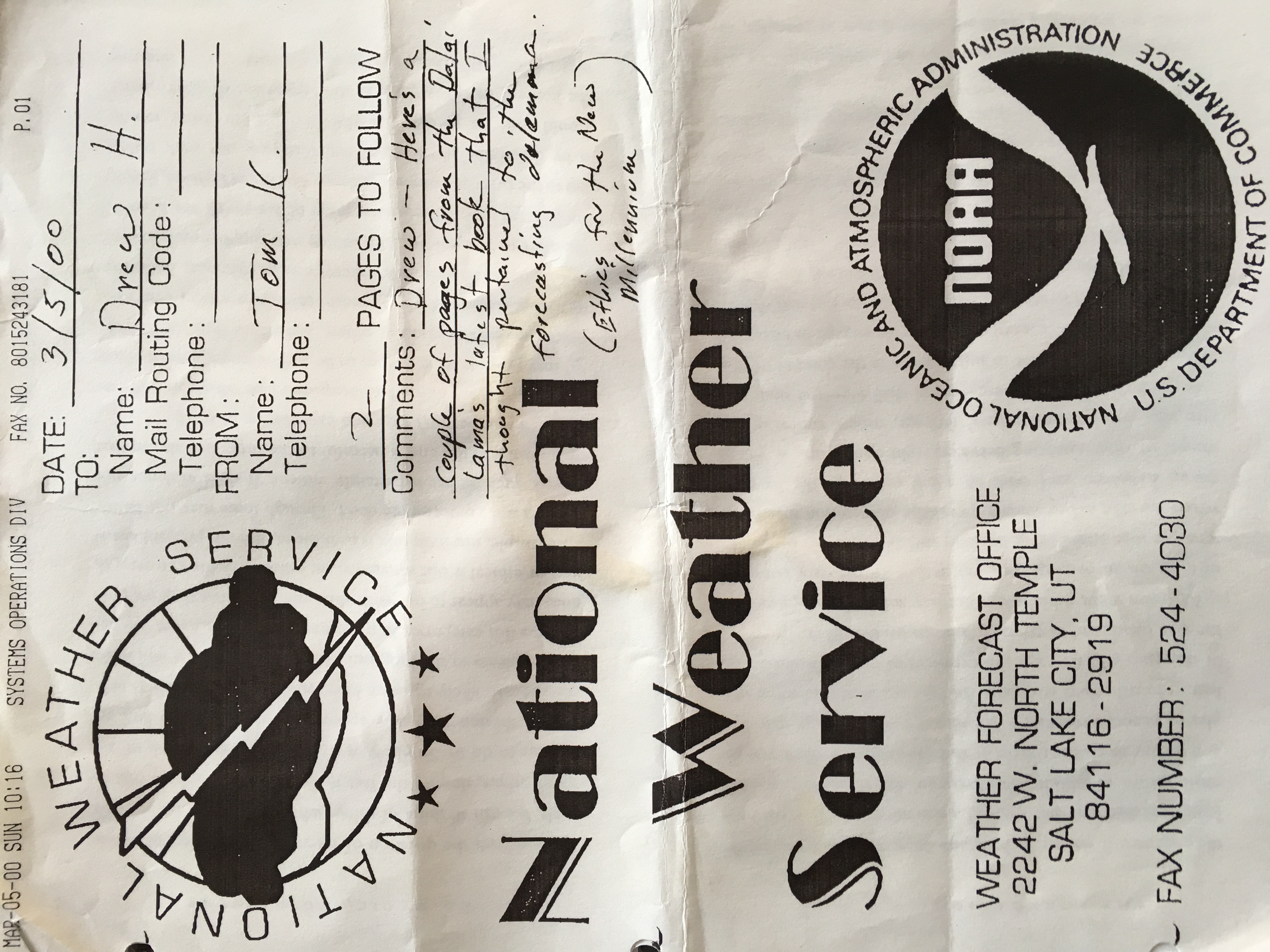 A couple of weeks later, I heard the whirr of the fax machine in the office. The fax was from Tom Kimbrough, another forecaster 30 years my senior and the person whose job I would inherit as a climbing ranger in the Tetons a few years later. The cover page and following excerpts from Ethics For the New Millennium that rolled through that ancient fax machine is what you see below.