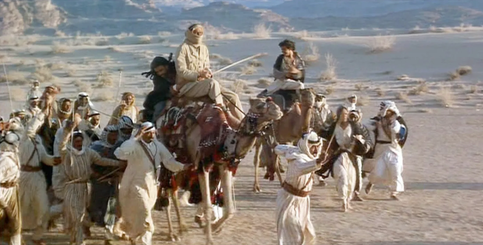 Midway through his traverse through the Nefud desert with the Arab rebels to attack Aqaba, Lawrence looks back and sees his Arab friend Gasim’s camel…but not Gasim.